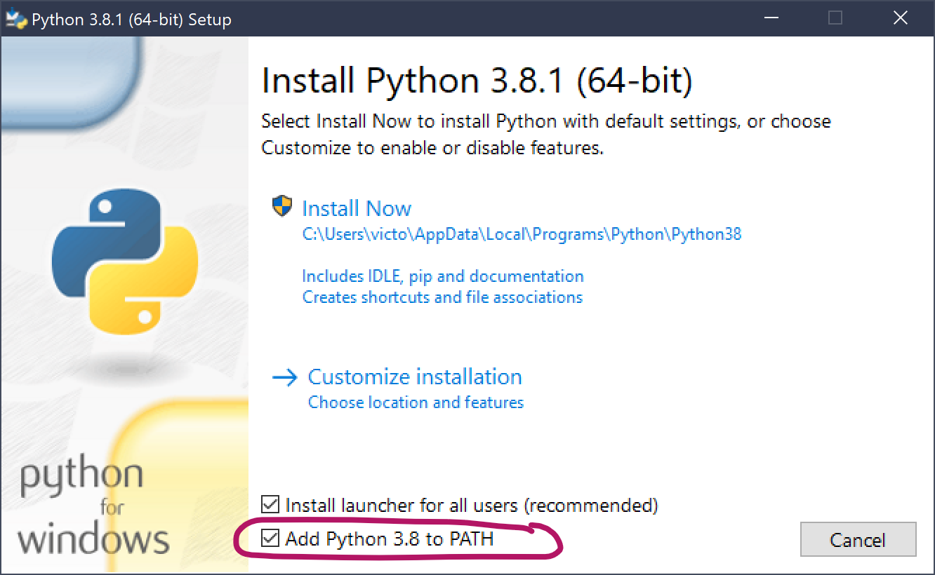 Une fois télécharger, vous devez lancer l'installateur. Attention, sur Windows, sur la première page de l'installateur vérifiez bien à cocher cette case !